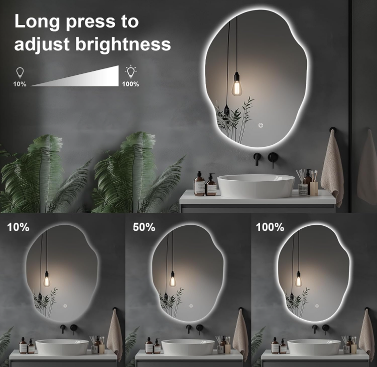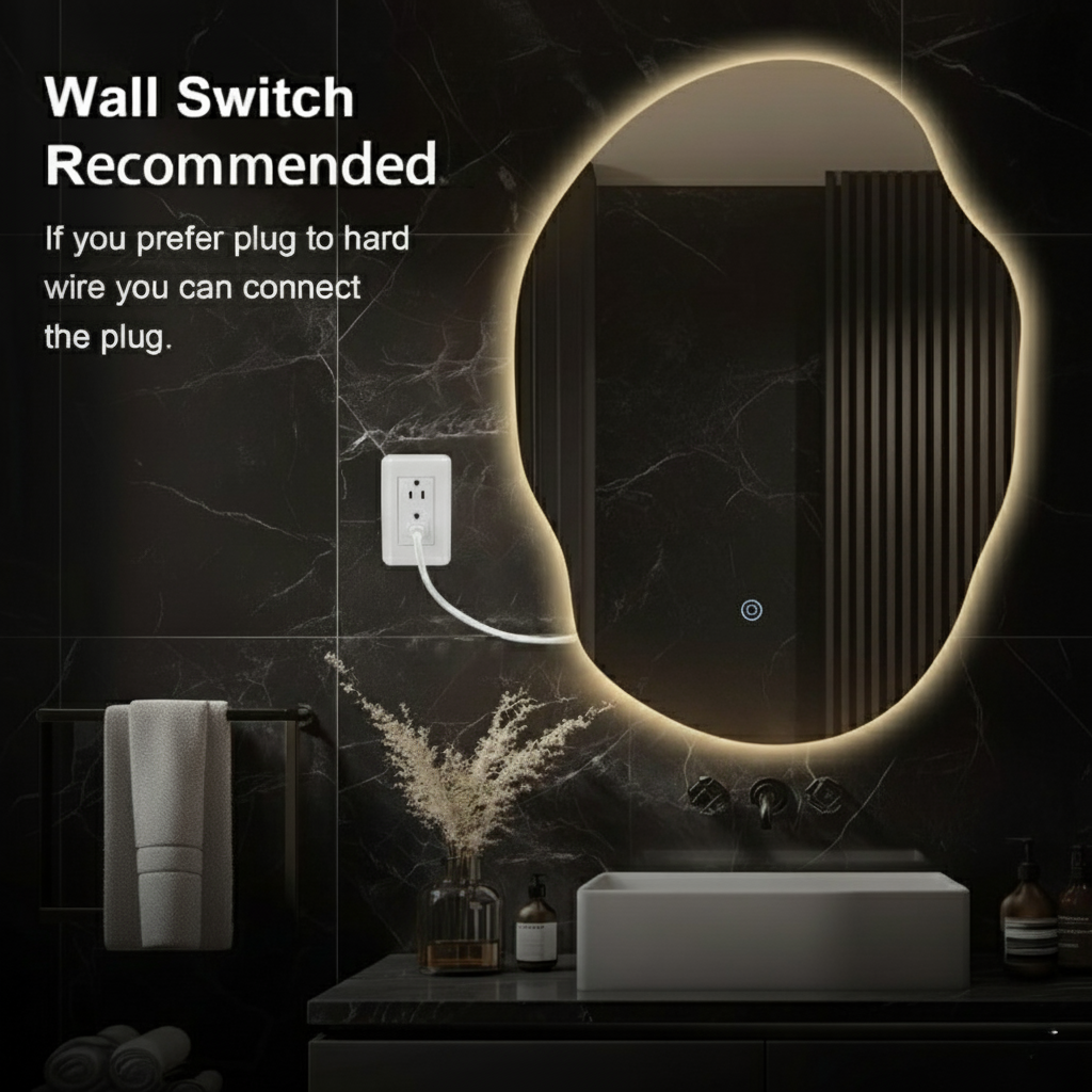 Elevate your space with the Glow Frame Mirror, featuring a minimalist organic shape that becomes a stylish focal point. Its subtle LED backlight casts a gentle, elegant glow, enhancing ambiance without overpowering. The integrated touch switch ensures effortless control while maintaining the mirror’s sleek design. Perfect for adding sophistication and understated charm to any room.