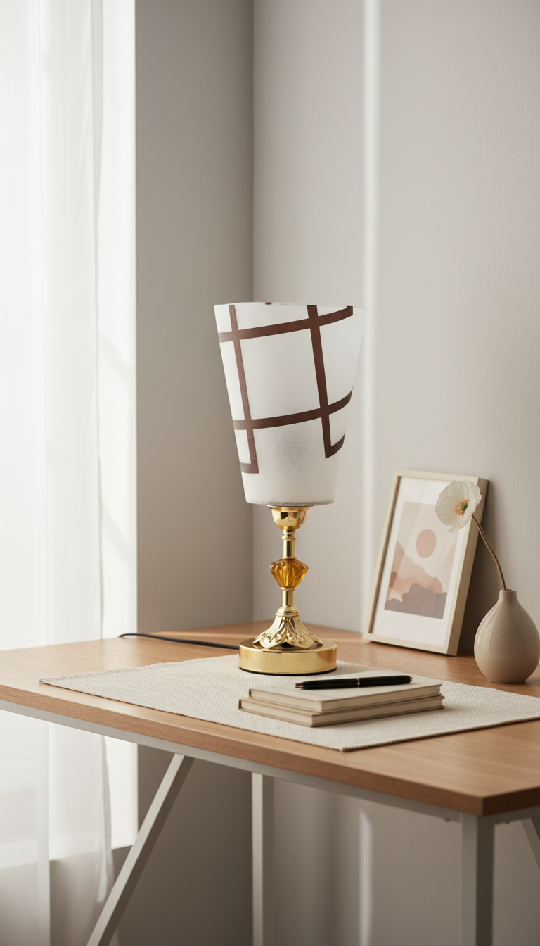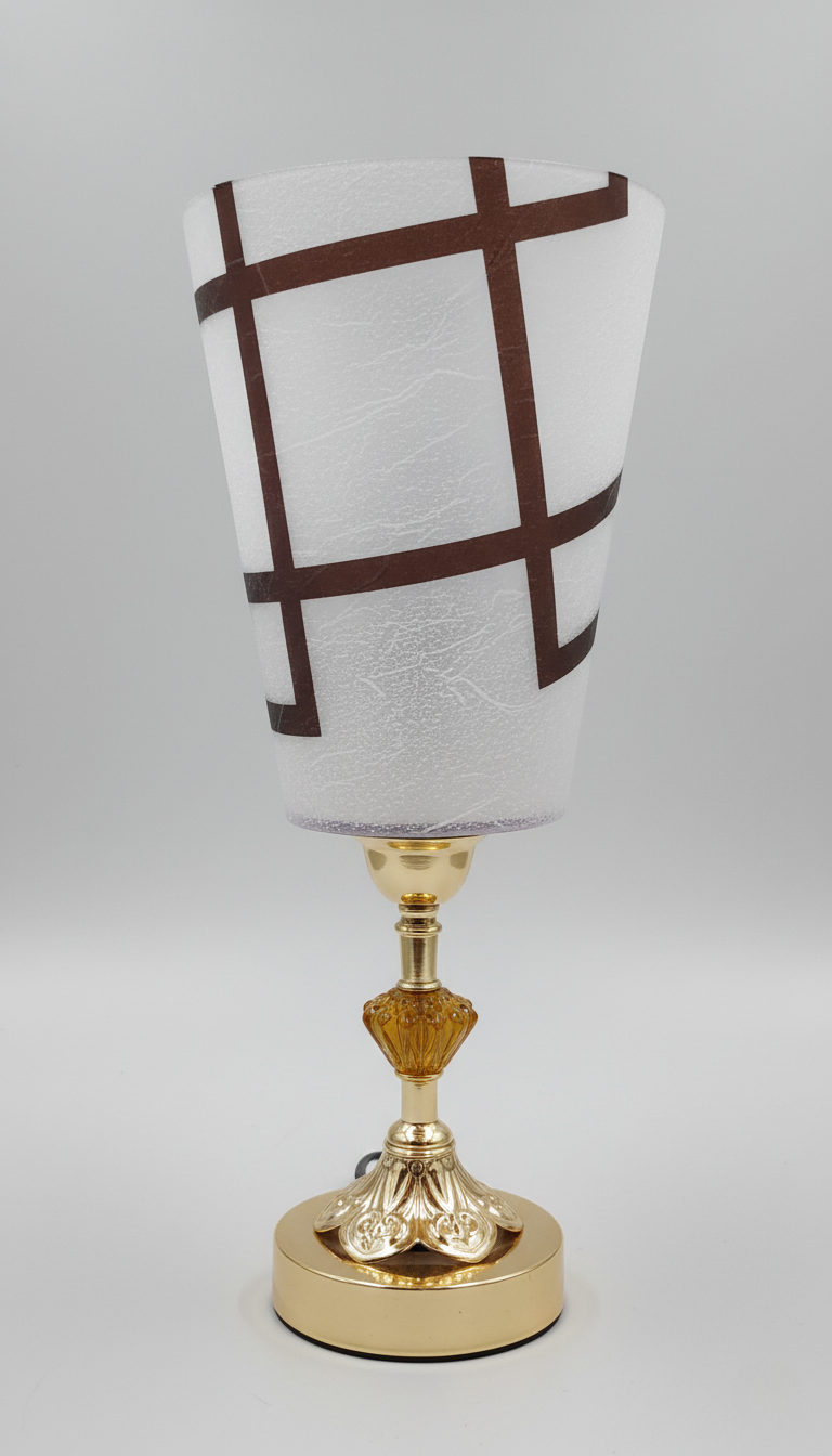 The elegant, tapered shade is crafted from frosted glass and features a distinctive brown grid pattern. This combination provides more than just decoration—it masterfully diffuses the light, producing a warm, soft, and inviting glow that's perfect for ambient lighting.
